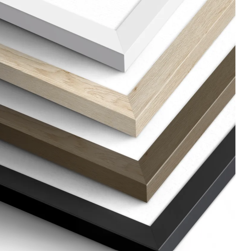 Our solid wood frames (Black, White, or Natural) are hand-finished and arrive ready to hang.