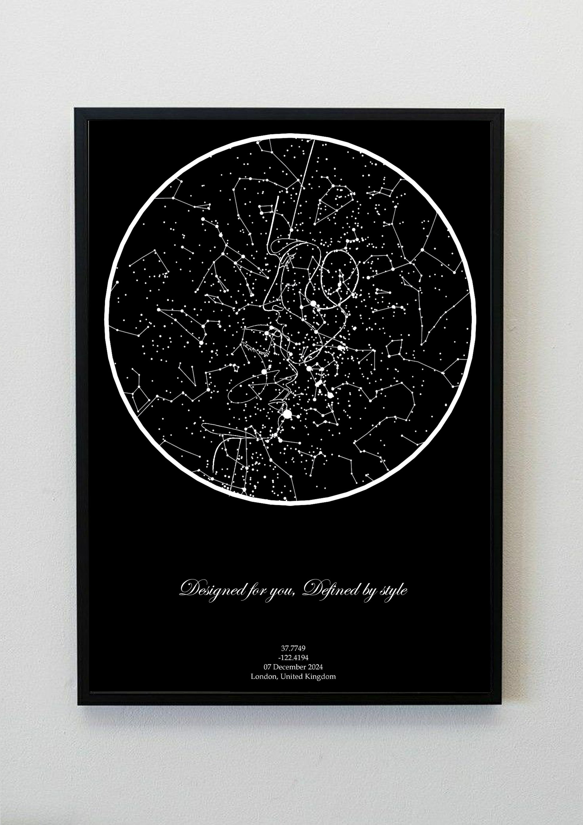 A refined, minimalist star map focused on clarity and elegance. The Grace design uses astronomical data to chart the exact constellations from your chosen date and location. Printed on premium gallery-grade paper, it’s a clean and timeless way to document a specific moment in time.